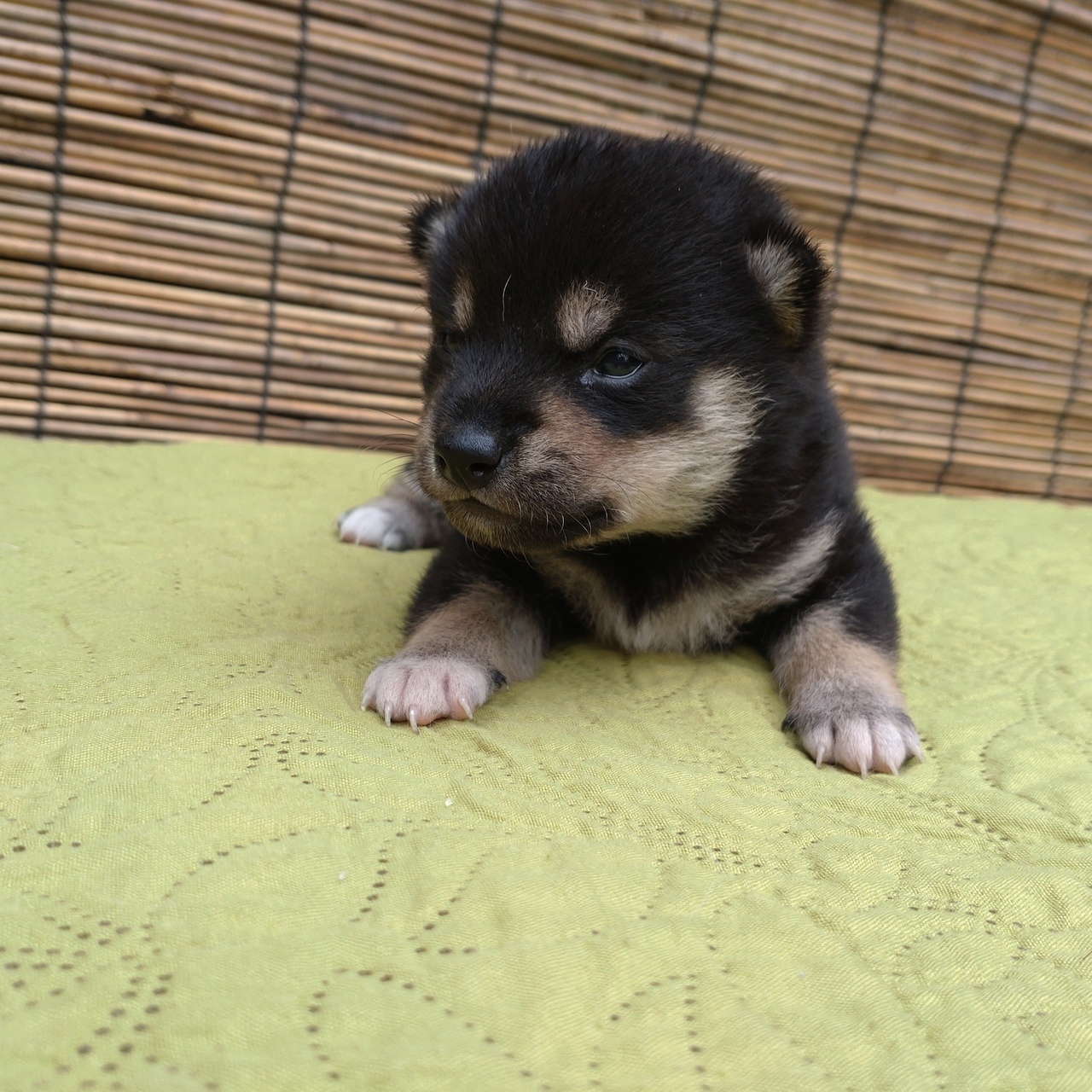 特徴 | とても小さくて配色の美しい黒の豆柴が久しぶりに 生まれてくれました。 まだ、月齢が低いので目も小さいですし、あどけない表情ですが、 これからの成長が楽しみな子です。